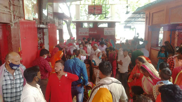 इन दिनों बिहार में बढ़ते  कोरोना संक्रमण को लेकर लॉकडाउन चल रहा है ,एक और जहां जिले में लगातार कोरोना के मामले बढ़ रहे है , सभी धार्मिक स्थल 25 मई तक बंद है. इसके बाद भी लोग अपने हरकतों से बाज नही आ रहे . सोमवार  को काफी संख्या में लोग उच्चैठ मंदिर पर पूजा अर्चना करने के लिए पहुंचे।  इस दौरान न तो कोई सोशल डिस्टेंसिंग का पालन करते नजर  आया साथ ही कई श्रद्धालु तो अपने चेहरों पर मास्क भी नहीं लगाए थे।